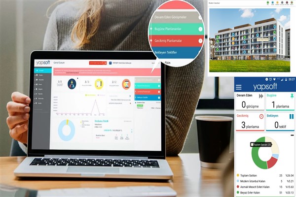 Şirketlerin ister satış ofislerinden, ister şantiyelerinde, isterlerse de müşteri toplantılarında diledikleri cihazdan erişim sağlayarak, müşteri kaydı, satış ve satış sonrası işlemlerini yapmalarını mümkün hale getiren inşaat ve gayrimenkul SaaS yazılımı Yapısoft, kullanıcı dostu arayüzü sayesinde satış ekiplerinin hızlıca sisteme adapte olmalarını sağlarken iş yükünü de azaltıyor. Firma yenilikçi ve sürekli geliştirilen altyapısıyla, inşaat ve gayrimenkul firmalarının yönetimsel ve müşteri bazlı operasyonlarında zaman kaybını önleyerek doğru iş ve satış gücünü ortaya çıkartıyor. Bunlarla birlikte Yapısoft ile şirketler, müşteri kayıtlarını ve görüşmelerini tutup potansiyel müşteri listeleri oluştururken aynı zamanda satış personelinin birbirleri ve yöneticileri arasındaki haberleşme trafiğini de yönetiyor. Satış sonrası sözleşme, belge ve evrak yönetimi ve takibi yükünü ortadan kaldıran Yapısoft, geçmişe yönelik personel, müşteri ve satış raporlarının tek tıkla alınmasını da sağlıyor.