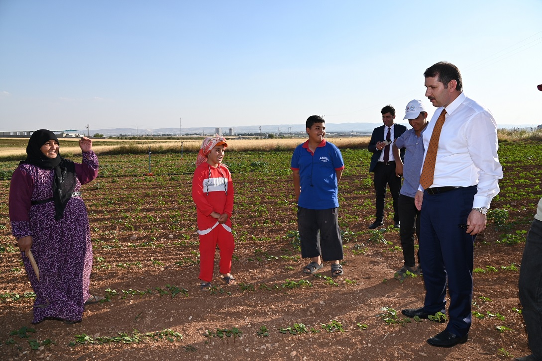 Tarlada çapa yapan işçilerin taleplerini dinleyen Vali Ayhan, Türkiye'de tarımsal üretimin lider şehirlerinden birinin Şanlıurfa olduğunu söyledi. Pamuğun üretimi ile ilgili bilgiler de alan Vali Ayhan, "Tarımda pamuk ve fıstık gibi üretimde lider ürünlerimizi Şanlıurfa'mız için sanayide markalaştırmalıyız. Bunun çabası içerisinde olacağız ve projeler geliştireceğiz" dedi.