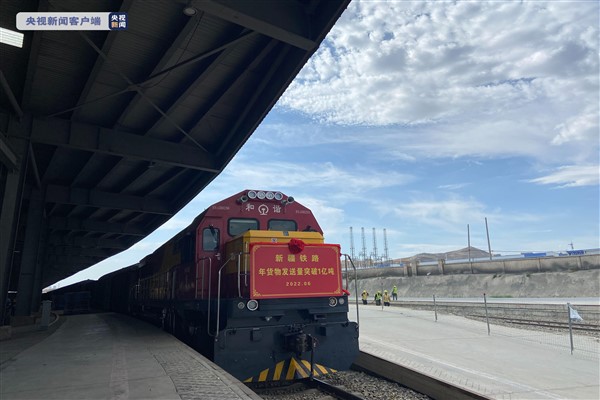 Xinjiang’ın demiryoluyla taşınan kargoların ağırlığının 100 milyon tonluk hedefi bu yıl , geçen yıla göre 22 gün önce gerçekleştirildi.