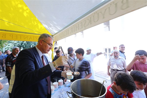 Pandemi dolayısıyla iki yıl aşure dağıtımı yapamadıklarını belirten Aksoy, "Bu yıl, özellikle kalabalık olan bölgelerde ve cami çıkışlarında dün ve bugün 20 farklı noktada, 30 bin kişilik aşure dağıttık. Hem kendi adıma hem belediye adına hem başkanım adına hemşerilerimizin, ülkemizin, insanımızın muharrem ayını kutluyorum, tebrik ediyorum. Özellikle bu günlerin bizim için, millet için birlik ve beraberliğe vesile olmasını temenni ediyorum.” şeklinde konuştu.