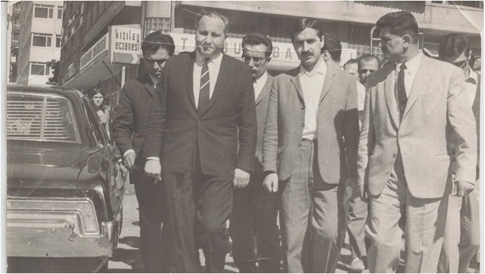 Bakanlıklarda ki TOBB merkezinden çıkarak AP’ne giden Erbakan Ankara/Kızılay meydanında… Yanında da öğrencisi bir ulusal gazetenin muhabiri olarak “omuz omuza…” ben vardım.